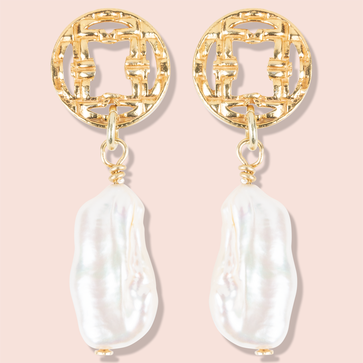 The TIMELESS "Baroque" earrings are CAD cast in 925 sterling silver. They have a diameter of approximately 1.2 cm. Their colour is achieved by 18K gold plating.
