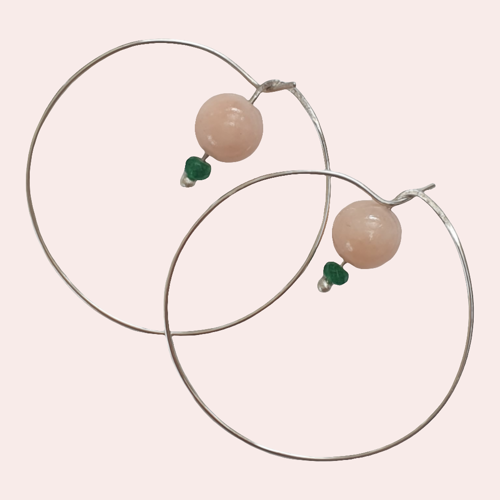Discover our trendy earrings in 925 silver, decorated with jade and morganite.