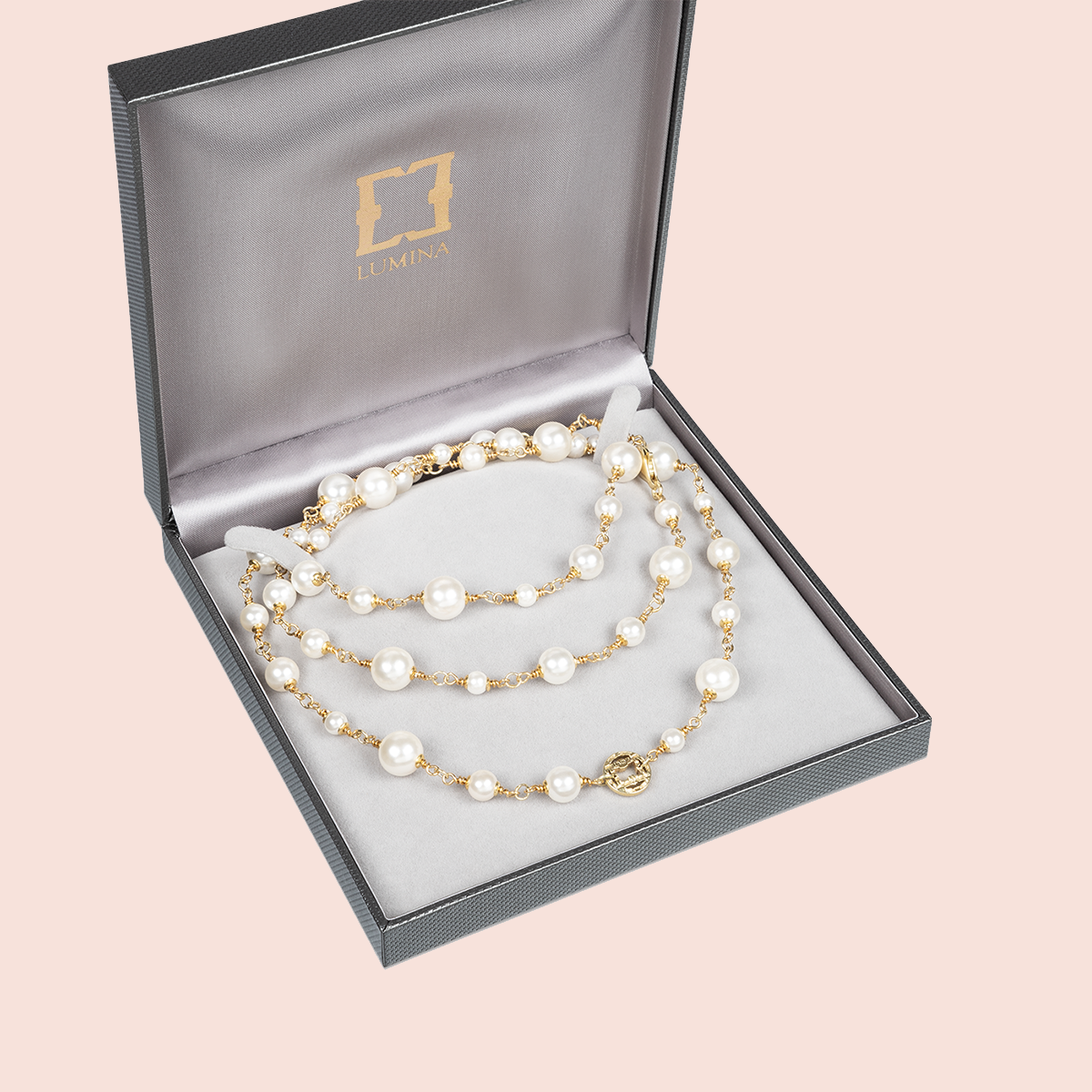 Die Perlen wurden aus echtem Muschelkern hergestellt und anschließend mit zahlreichen Perlmutschichten überzogen, dabei ist eine tiefe Perlmutschicht entstanden.